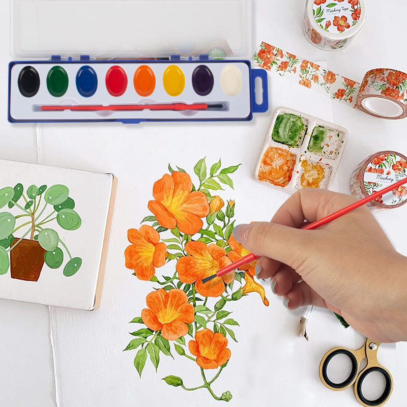 Môžete si byť istí, že si môžete kúpiť 8 farebných polosuchých akvarelov z našej továrne. Maľovanie podporuje tvorivý rast a inšpiruje brilantné umelecké diela, či už ide o prácu na školskom projekte, vytváranie nápisov alebo vytváranie expresívnej maľby. Rozhýbte fantáziu, zvýšte sebavedomie, rozvíjajte zručnosť a možno dokonca objavíte novú celoživotnú vášeň, ktorá nevyžaduje obrazovku.